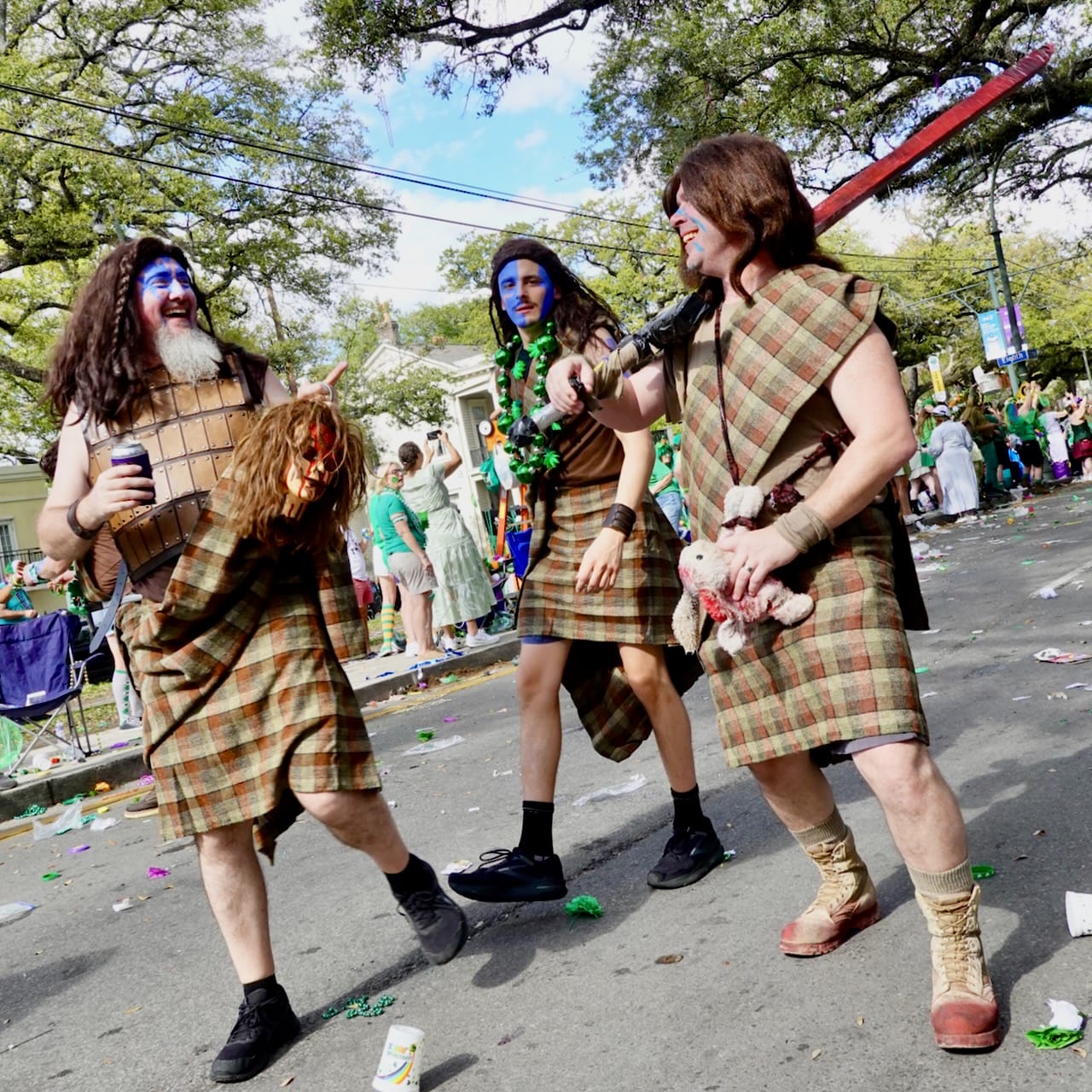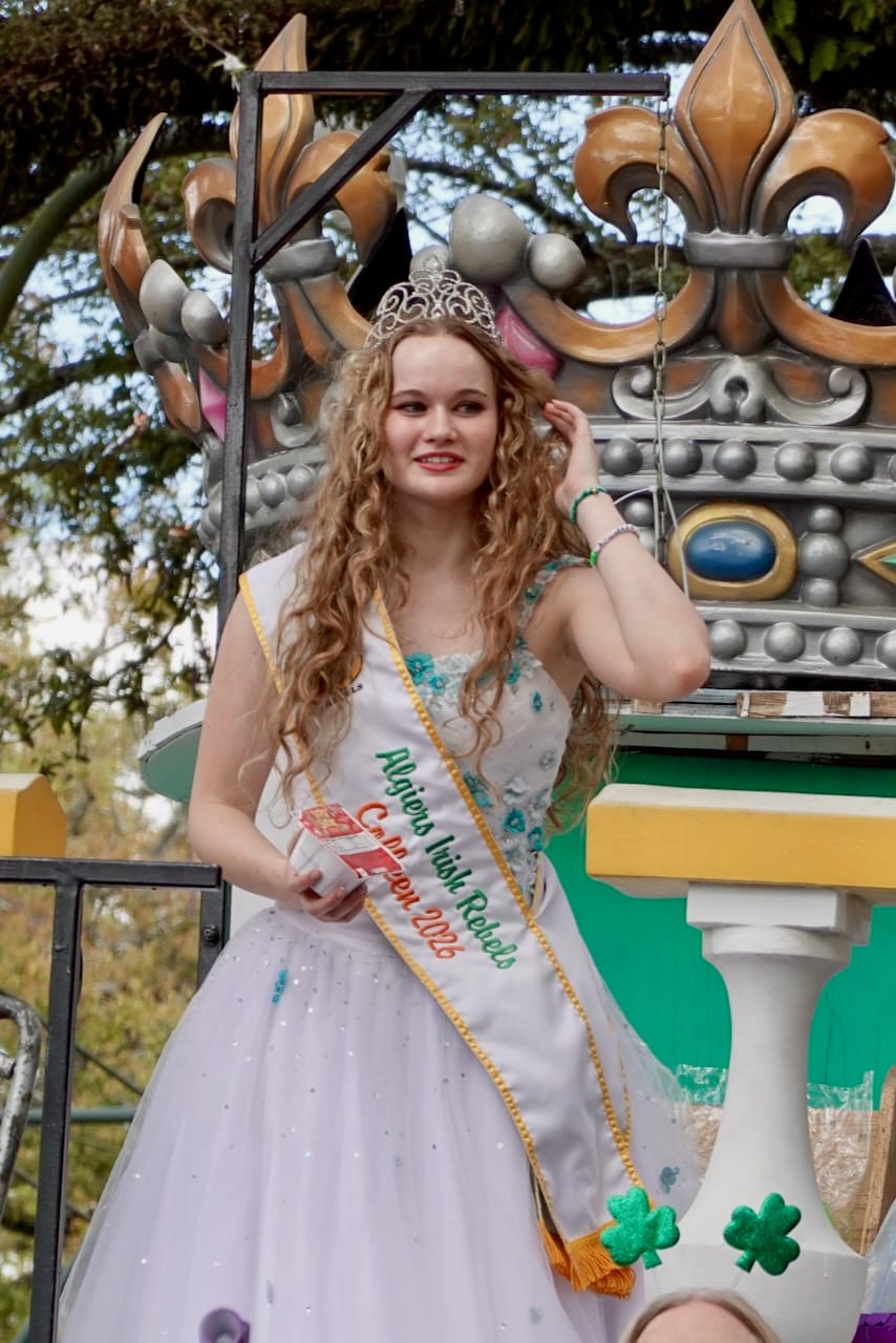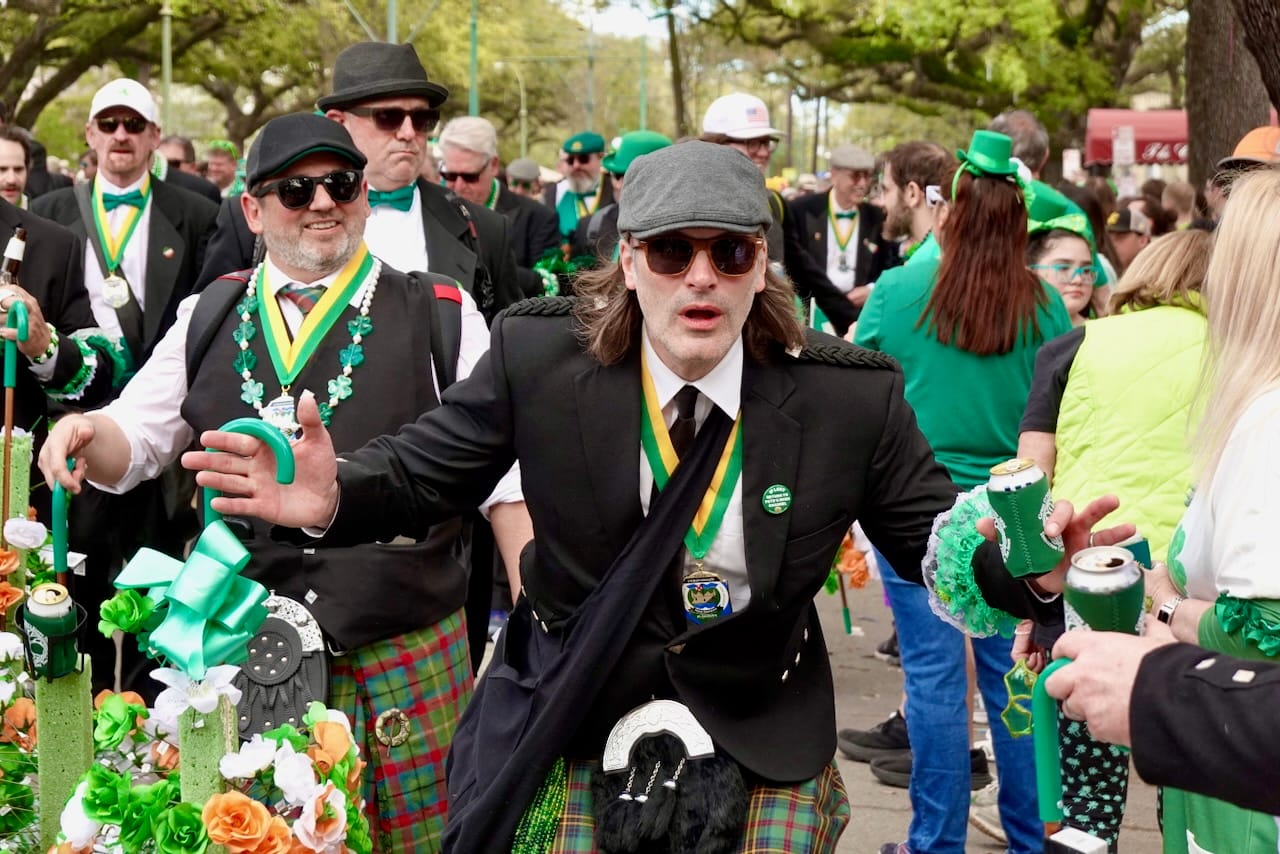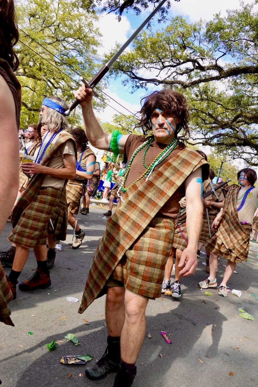 Established in 1947, the Irish Channel St. Patrick’s Day Club also includes the period-costume clad Irish Famine Orphans Society, the fleet feet of the Muggivan Irish Dancers, as well as the blue-stripe-painted, wigged, kilt-wearing men of the Braveheart Warriors Marching Club.